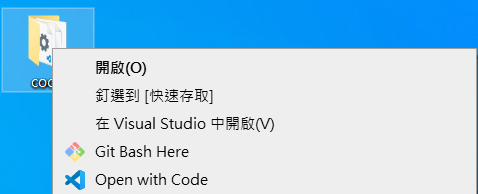 - 將[以Code開啟]動作加入Windows檔案總管目錄的操作功能表中