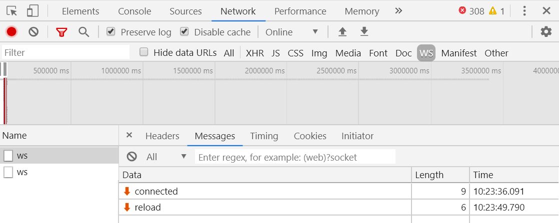 到這一步我已經快黔驢技窮了,確認 Server 和 Client 都沒問題之後,透過Chrome的開發人員工具觀察到 Websocket 有送出 reload 的 event