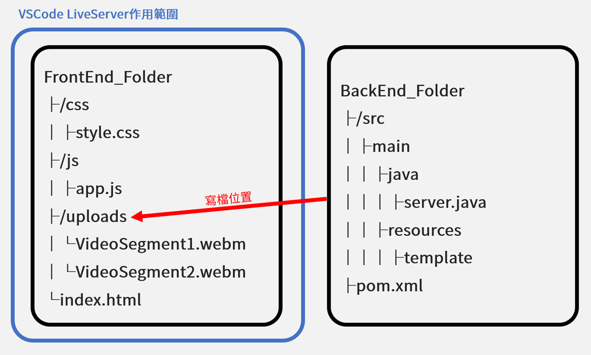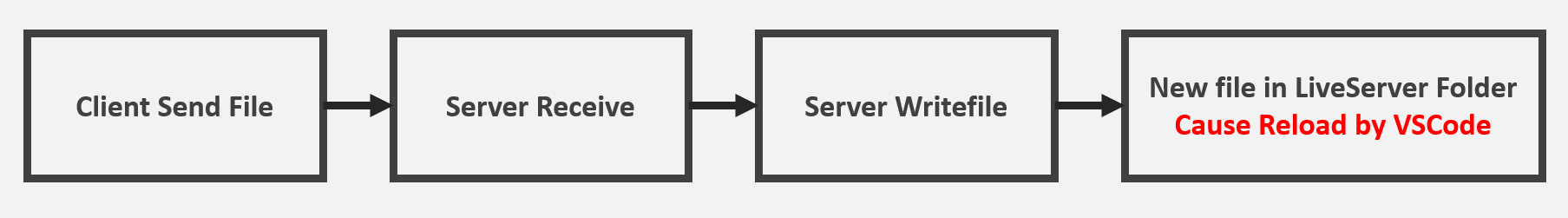 Server 會將前端傳過來的 webm 檔案存到前端的 ./uploads 資料夾底下,也就是 VSCode LiveServer 的作用範圍,造成 reload